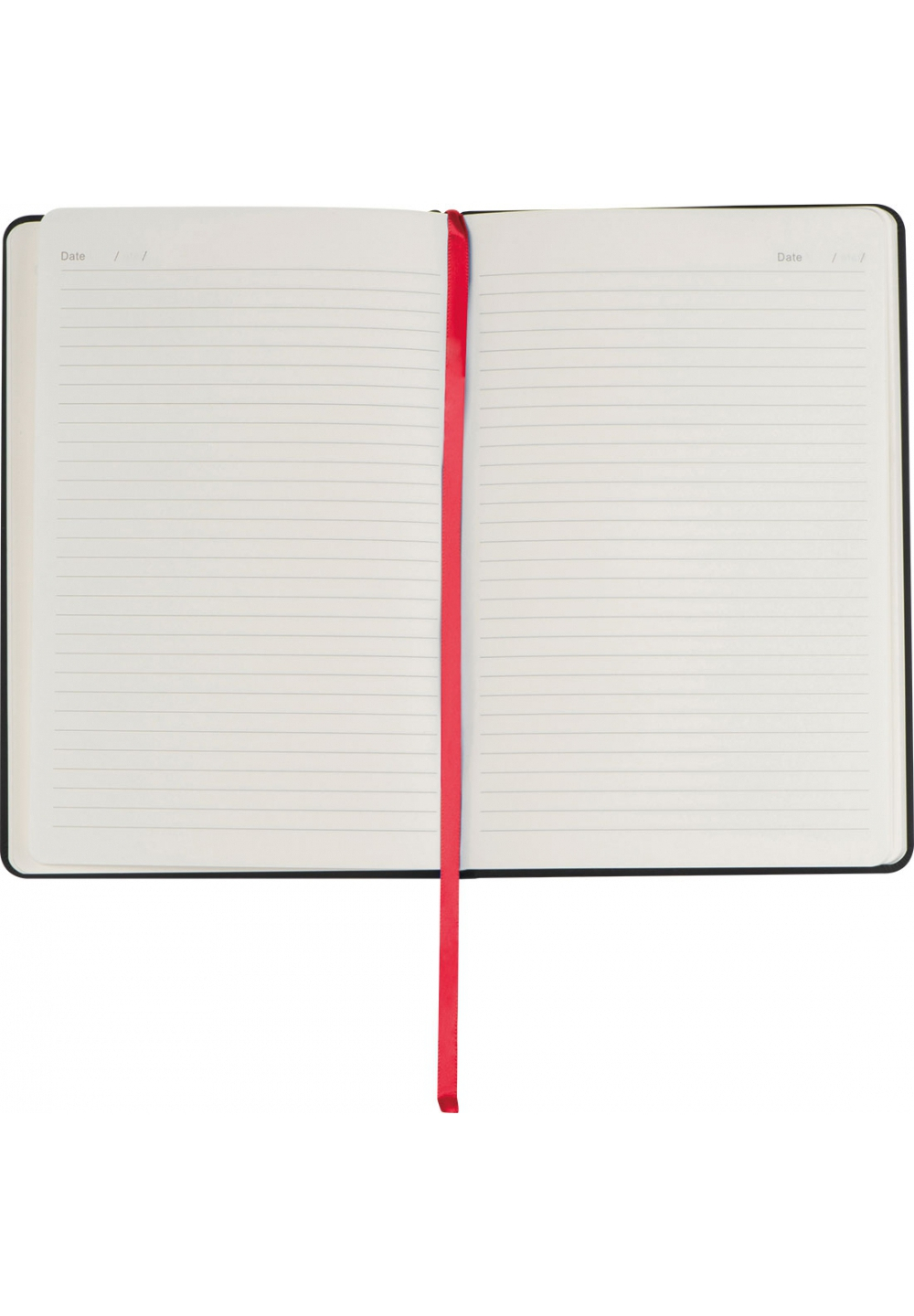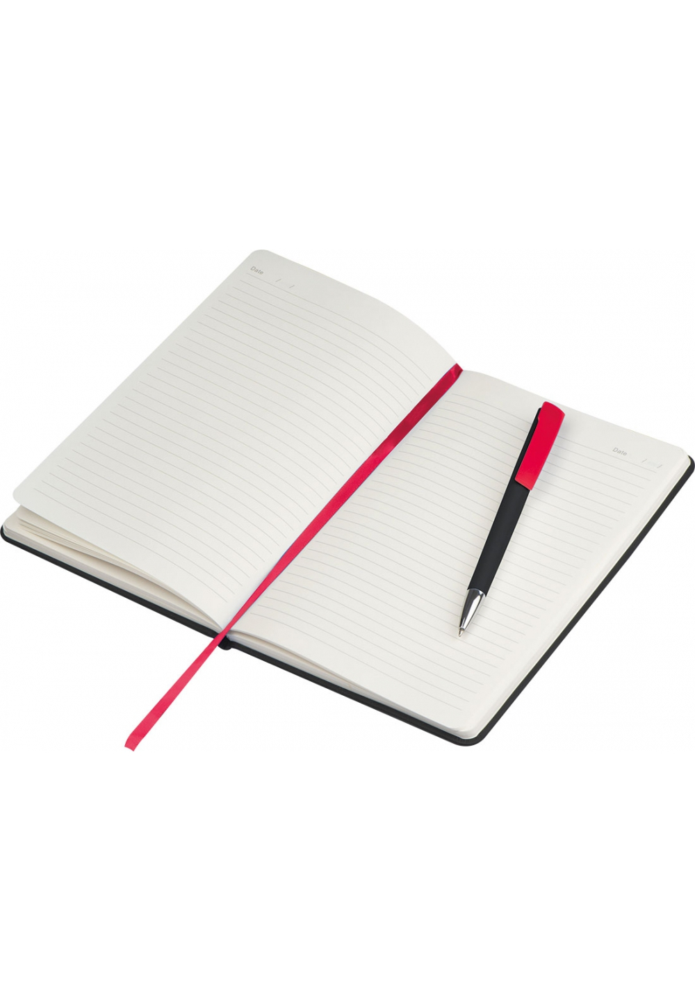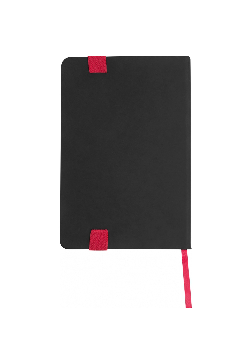 Czarny notes reklamowy z zamknięciem na gumkę i miejscem na długopis. Notes jest w rozmiarze A5, który jest szczególnie lubiany przez klientów. Notesy reklamowe w tym modelu można oznakować przy pomocy tampodruku.